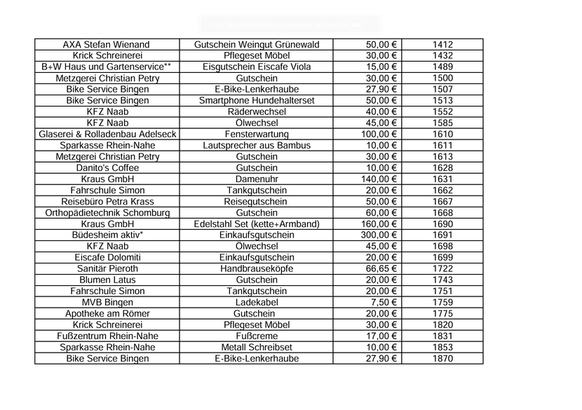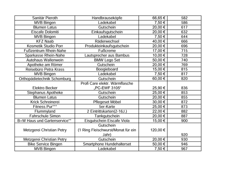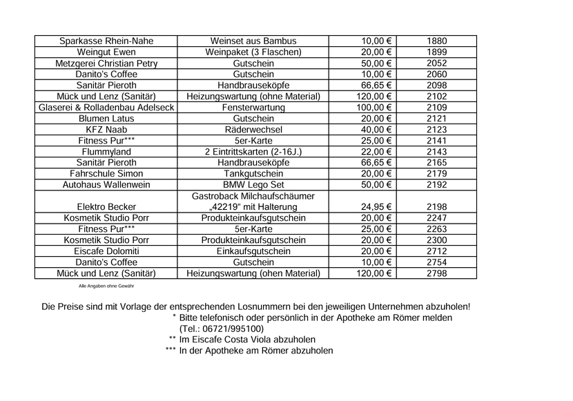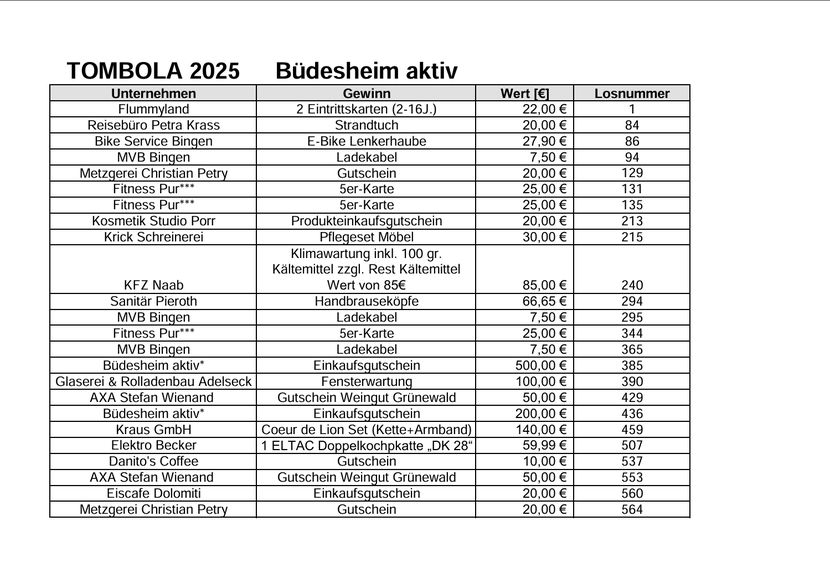 Die Ziehung der Tombola-Gewinner im Rahmen der Büdesheimer Nachkerb fand am Donnerstag statt. Der Erlös geht zu Gunsten des Hochschulsports der TH Bingen. Ein herzliches Dankeschön an alle